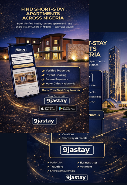 Browse thousands of apartments, hotels and short-let properties across Nigeria and book instantly with the 9jastay mobile app.
